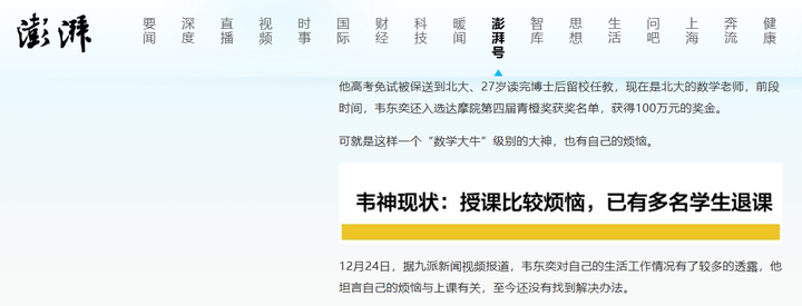 [教育信息]韦东奕在北大任职,教课水平怎么样? |