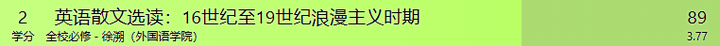 当然还有我年少无知在英语分级考试考了超过我水平的档次,被迫一开始选(可能是)最难的英语课(感觉分级C+的CTAW看评价都还好,然而我一开始上的这两门就很打击人),然后饱受挫折,不过另外两门英语课我的成绩都不错。 |