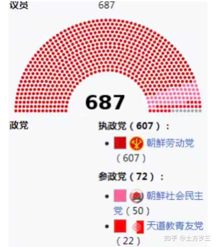 朝鲜社会民主党党徽和在议会所占席位,该党是朝鲜第二大政党。 |