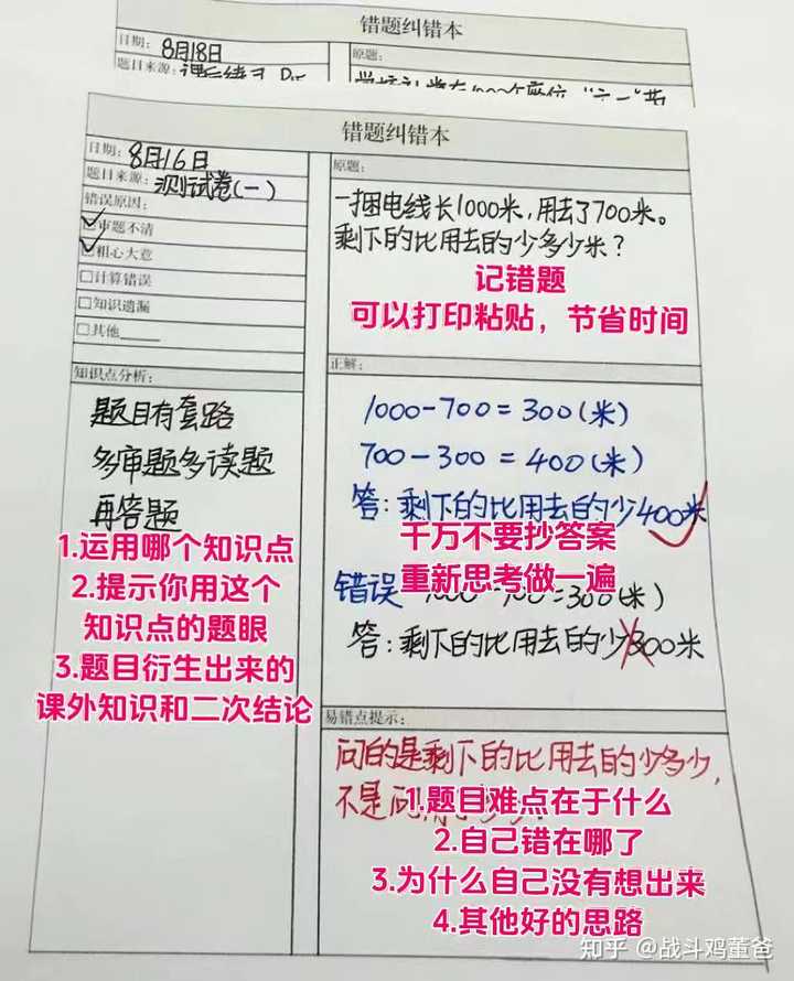 我女儿,应该算大家眼中的学霸,毕竟小初高一路重点班,最后考进了浙大。其实她一开始也是被各种碾压,尤其一二年级的时候,大部分时间都排在班级2/3的位置,再加上当时周围牛娃太多了,我当时甚至怀疑她是不是真的不太聪明。 但我老婆比我淡定多了,一点都不着急,她说:“现在还真看不出来她是块儿什么料。”果不其然,孩子进入初中之后立马带来了不一样的学习成绩,月考、期中考经常位居全班第一,直到那个时候我才发现她隐藏的巨大能量。 我小儿子现在也在初中尖子班,明年有望冲一冲省重点高中,也算是别人眼中的小学霸吧。不夸张地说,在七大姑八大姨眼里,我家就是个“学霸培养皿”,都想把孩子送过来跟着熏陶一下。 其实顶尖学校并不是光靠努力就能考上的,而且顶尖的学霸学习一般都比较轻松,并没有常人想象的那么辛苦。最近我抽空仔细回忆了一下,从平常接触过的牛娃以及我女儿和儿子身上总结了几个学霸的共性,供大家参考。某种程度上可以帮助大家判断:自家孩子到底是不是学霸的料? 首先第一点,记忆力好。 我两个孩子记忆力都挺好,像背课文、背单词等等对他们来说很轻松。尤其是我大女儿,从小就表现出来记忆力很强,比如幼儿园开始她就能把学校里发生的事情、同学的表现、老师讲的话记住,而且还能复述地大差不差,当时人送外号“小灵通”,有时候接孩子放学还会有其他家长找我闺女打听自家孩子的情况。等她再大点的时候字词教一遍就能记住,不管是广告词还是绘本上看到的单词、句子和古诗词她都能顺口重复出来。 等她到了小学,背单词、课文都是靠课间10分钟完成的,背完就默,这一项考试基本都能满分。 我之前也问过她是怎么记住的,她说她不知道别人是怎么背的,但是对她来说背诵其实是在朗读大脑中的画面,每句话每一个字在课本的哪一页,甚至书上做了什么笔记都在这个画面中。 第二点,举一能反三。 一般孩子刷题只求做对,不会思考这道题还有没有其他解法更别说是更优解了。而我俩孩子不是,他们会自己改题目,把题目里的条件变一变,就能成为一道新题目。所以他俩从来不用题海战术,做会一道题,相当于把同类型的题都会了。 我自己辅导他们的时候也用这一招,根据他的一道错题,会找各种同类型题目来给他们练。但是说起来容易,做起来难,要想学会举一反三,同类题就不能一错再错。当时我给闺女特别准备了一个东西——纠错本(这个时候学霸和学渣的区别就出来了),为此还定了一个规矩: 1.从一年级开始,考试有错题,就奖励2块钱; 2.如果想买什么东西,必须把错题写在纠错本上,充分理解认真纠错之后才能得到; 3.每个周末最后一天,我会在纠错本上随机抽查一个问题。如果有一道题错了,孩子就会被扣4块钱,所以她做每一道题都格外小心; 4.每个月的最后一天,我会把错题本上的题二次改编一下,对她进行测试。如果写错了,会被扣6块钱,因为她没有举一反三的能力。 从小学三年级开始,她不仅可以举一反三,还养成了充分理解每一个知识点的习惯。这个习惯一直保持她进大学,直到现在,她也在用这招给他弟纠错。给你们看看当时我给她准备的纠错本,这样的本子姐弟俩一共十几本,1300多页。 |