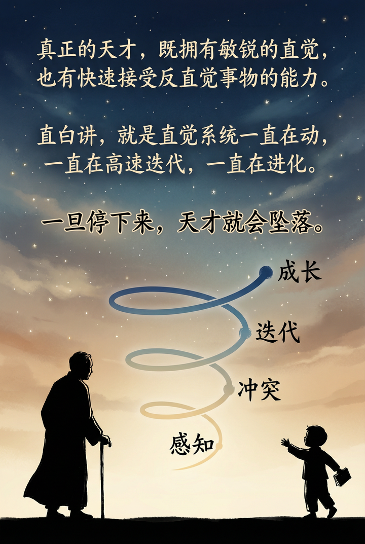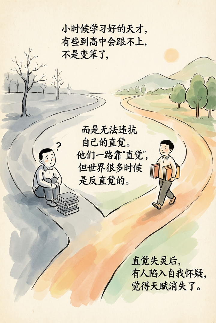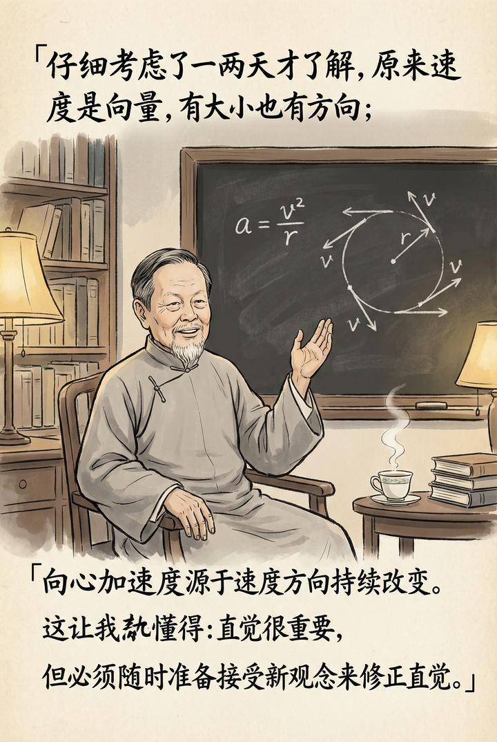 我最近有个感悟:学霸有一个特点——不轴。或者反过来说,太轴,可能小学初中还行,但是到了高中很难保持学霸状态了。 很多人判断孩子是不是学霸的料,会看智商、看记忆力、看专注度。 但我观察下来,这些都不是最关键的。 真正的关键在于——孩子能不能快速迭代自己的直觉。 什么意思? 就是当孩子遇到与自己直觉相悖的知识时,他是固执地坚持“我觉得应该这样”,还是能够迅速调整认知,接受新的观念? 这种能力,才是区分“小时候聪明”和“一直聪明”的分水岭。 杨振宁先生曾经讲过一个关于他学物理的故事,特别能说明这个问题。 我做了一组漫画,把这个故事和背后的道理讲清楚: |