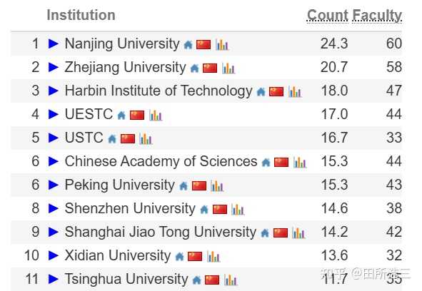 而哈工大排第三着实有点让人意外,要知道大家普遍认为哈工大的计算机科学学科的实力是不如清北和华五的,而且CSRankings榜单在2018年,哈工大还在第18位,这几年时间,迅速发展已经排到了第三名。 |