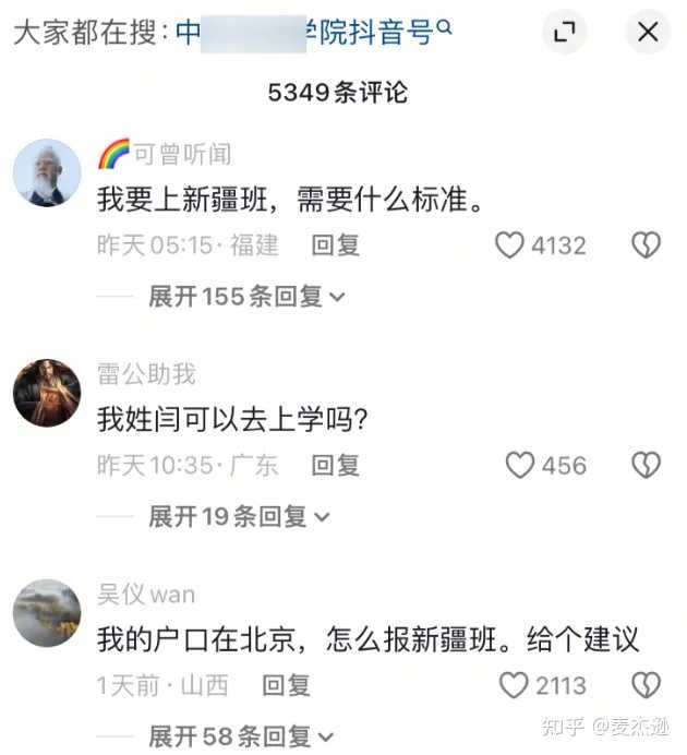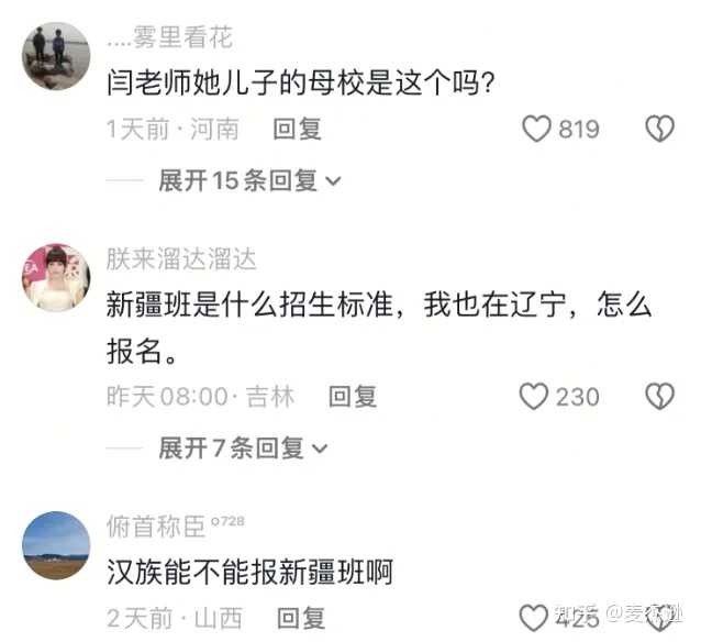 所以,闫学晶的儿子到底是不是某名牌大学的“新疆班”的毕业生,我不确定,我目前只能确定的是,闫学晶的儿子读大学的时候的那个班里,确实有新疆的学生。 而且我还能确定的是,目前,在闫学晶儿子所毕业大学的相关视频下面,已经有一大波网友涌入评论区,进行了大规模的留言: |