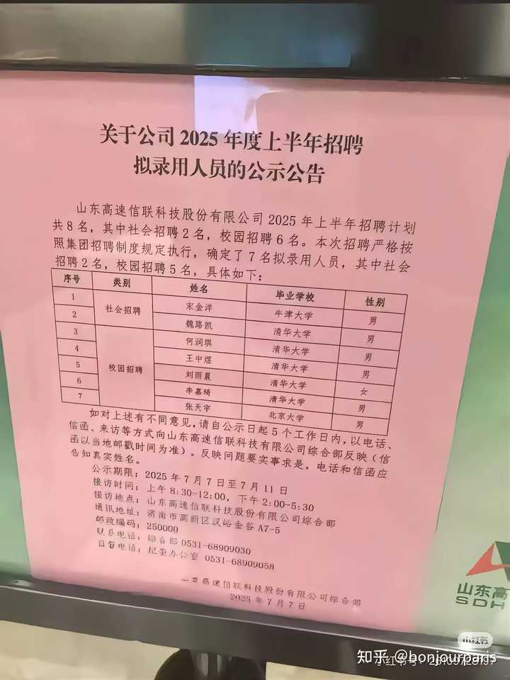 很巧今天看到山东高速的公示,这就是大家所谓的给你无限可能的清北生的出路。 |