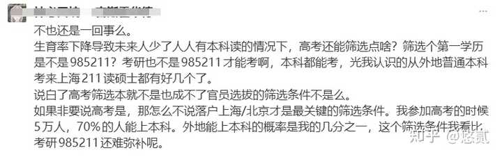 热知识: 在高考之前,中国的人才选拔模式已经历过了包括 秦:世袭制 汉:举孝廉制 魏晋南北朝:士族垄断制 隋唐到清代:科举制 民国:资本垄断制 在内的5个阶段,高考是有很多问题,但是取消高考以后,不知道曾校长想选择哪种制度来解决教育资源的分配问题? 友情提示,美国人玩的推荐信制度(举孝廉制)、英法澳玩的2-3年制本硕制(资本垄断制),我们已经玩过了哦。 ~~~~~~~~~~~~~~~~~~~~~~~~~~~~~~~~~~~~ 评论区不止一个人在重复一个奇怪的逻辑:只要出生人口少了,就人人都有高中读,人人都有本科上,所以中高考可以取消了。 |