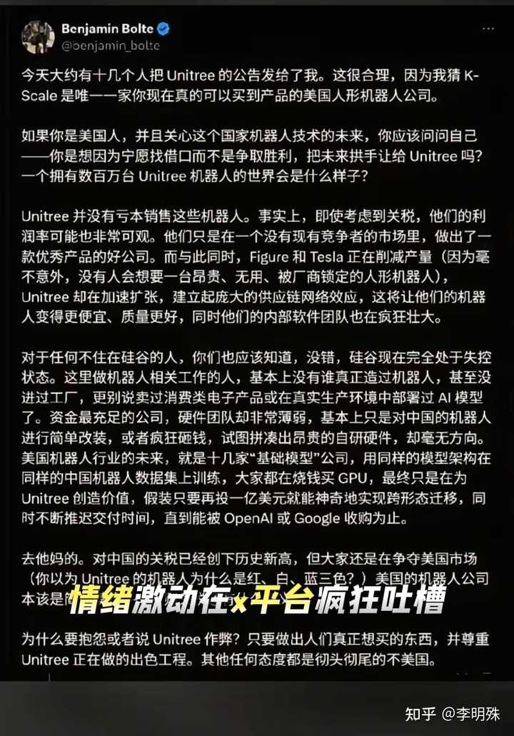 这事就别嘲笑印度了,就算是硅谷,也是这样的。 这位是在硅谷制造机器人的宇树科技的同行,正在破口大骂。 |