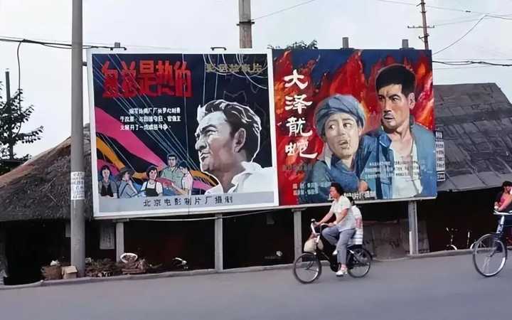 4、80年代成都市某处街头,张贴着两幅电影宣传海报,电影的名字分别是《大泽龙蛇》和《血总是热的》,不知道有没有人还记得这两部电影。 |