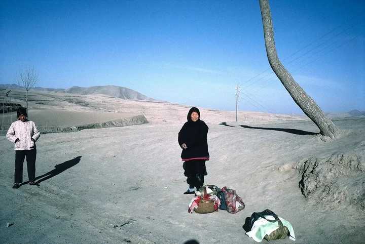 14、80年代的甘肃,在村口的土路旁,两名村民正在等待着汽车的到来,在那个时候人们的出行非常的不方便,有些地方甚至一天只有一趟汽车。 |