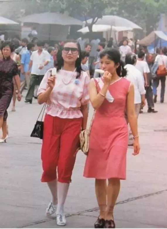 11、80年代的重庆,两名穿着非常时髦的年轻女子正一边吃着冰棍一边向前走着,这样的一身装扮就算是放在今天也不算违和。 |