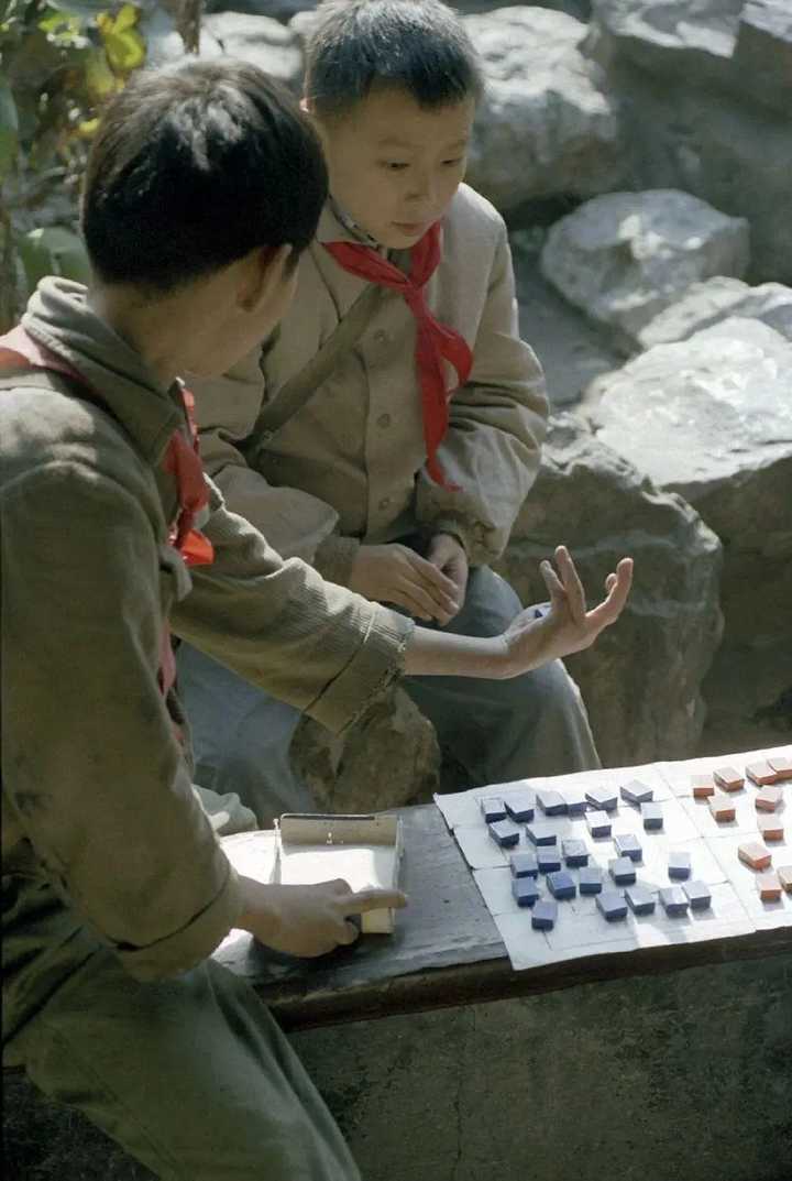 9、1981年上海,三名小男孩正在下着军棋,其中的一名小男孩正在向坐在中间的“裁判”讲解着判定的规则,相信有很多80年代的小伙伴都曾经下过这种军棋。 |