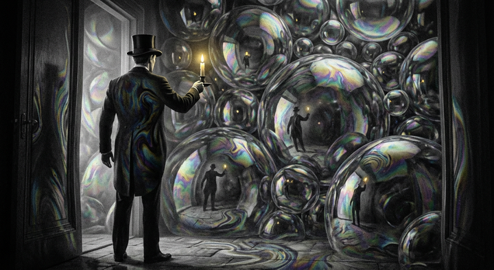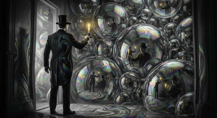 你现在是上世纪 20 年代的怪奇小说(Weird Fiction)插画师与表现主义电影导演。 任务:描绘一张极具压迫感的、伪造的“1920年代恐怖电影剧照”。 【场景描述:理智的边缘】 主体 (Foreground): 一位幻影般的魔术师的全身像。他正站在一道不可名状的“维度之门”的门槛上。他侧身背对着我们,高举着那支渺小的、颤抖的蜡烛,试图照亮前方。 背景 (The Entity): 门对面不再是现实世界,而是外神优格索托斯 (Yog-Sothoth) 的显现——那是“亿万个大小不一、堆叠挤压的球体与泡泡”的集合体。这些泡泡充斥了整个视野,仿佛要从门框挤进现实。 【光影挑战:混乱与秩序的碰撞】 这是一场光源的战争,请务必体现出“杂乱且不一致”的光照逻辑: 弱秩序光源: 魔术师手中的蜡烛提供唯一的、暖黄色的、微弱的核心定点光,仅仅照亮他的手套和礼帽边缘。 强混沌光源: 背景中的亿万个泡泡发出暗淡、病态、五光十色的冷光(Dim Iridescent Glow)。 关键难点: 这些泡泡的光源位置是随机的、流动的,它们在魔术师黑色的燕尾服背部投射出斑驳陆离、像油膜一样扭曲的反光。 【材质与视觉特效】 黑白电影质感 + 幽灵色彩: 整体画面保持 高颗粒感的黑白摄影 (Heavy Film Grain B&W) 风格。但是,让泡泡的“五光十色”以一种极低饱和度、仿佛胶片发霉或过曝的形式(Spectral Color Bleeding)渗透出来。 折射噩梦: 每一个巨大的泡泡表面,都必须隐约反射出魔术师扭曲的倒影。 【负面限制】 严禁生成克苏鲁触手(我们要的是泡泡)、严禁生成清晰的骷髅或尸体(保持NSFW安全但精神污染)、严禁变成可爱的肥皂泡(要有粘稠、厚重、宇宙恐怖的质感)。 这就是我说的乍一看没问题,细看全是问题。 首先,AI理解不了什么是维度之门这种充满幻想的东西,但是又知道这里必须有扇门,所以它简单地画了个门丢在图里,但是把隔着门觐见外神的隔着门给搞丢了,现在泡泡和调查员被困在一起了,看起来像是在玩克系密室逃脱。 然后,违背了要求里的光源要求,光源是随机的,但是很显然有一道更强的光从门口照进来了。 第三,五光十色的油膜质感应该局限于泡泡和调查员身上,但是很显然,地板上也全是。 最后,我们细看泡泡里的倒影吧。 要求是“每一个巨大的泡泡表面,都必须隐约反射出魔术师扭曲的倒影”,但是结果呢? 有的泡泡有倒影。 有的泡泡没有倒影。 有的泡泡有很奇怪的倒影(比如有一个泡泡里倒影的火光取代了调查员的头)。 泡泡彼此的倒影也很奇怪,很多都不正常。 但是乍一看还是看得过去的,对吧? 我又想起听说这一代的NBP可以语言描述修图了,我想先把泡泡里的倒影补上吧? 然后它给了我这个 |