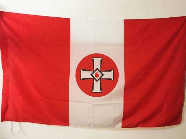 民族社会主义德意志工人党(纳粹党)党徽 外观看起来是一些几何图形的组合加上了字母 具有神秘主义色彩的“民族象征”符号(万字符)与背景的白色和外圈红色形成亮眼的鲜明对比,主题突出,神秘感和美观兼具 |