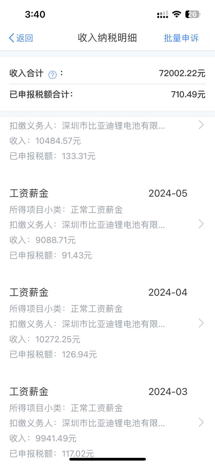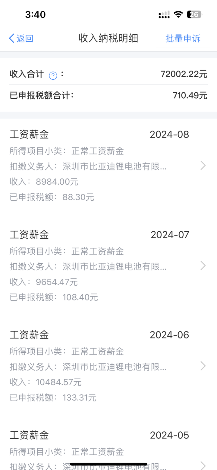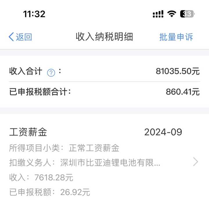 这是24年截至到九月份的总收入 (这个不是在炫耀哈,这点年收入比不上知乎大佬们的月薪,只是想借此阐述一下我的表达) 基本上每年的总收入都在小幅度上涨,21年至24这三年也是比亚迪风生水起的三年,我的底薪从刚入职2350涨到3510,基本上从24年开始,每个月工资扣除五险一金,到手的收入差不多在8000~8500左右吧。 |