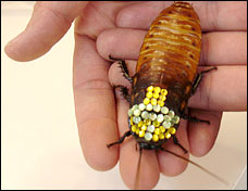 By No machine-readable author provided. Kugamazog~commonswiki assumed (based on copyright claims). - No machine-readable source provided. Own work assumed . CC BY-SA 2.5, https://commons.wikimedia.org/w/index.php?curid=1979073 2006 年,Jared Gold 用活体马达加斯加发声蟑螂和施华洛世奇水晶制作胸针,在美国盐湖城的商店 Black Chandelier 销售,他声称这种新奇首饰每周能售出 25 件,店内售价 60 美元,网上售价 80 美元。对于“伦理争议”,Jared Gold 起初声称他是从饲料生产商手中买来这些昆虫、这些昆虫在被佩戴者适当照顾的情况下通常能活 1 年、产品配有护理说明,后来他在伦理争议影响下停止生产这种胸针。 |