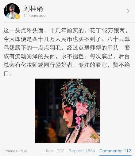 刘桂娟的那个点翠头面(虽然不是她的私产)买的时候就花了12个w,那可是90年代末21世纪初的12个w,不是现在。 看了一下补充,用的是染色鹅毛,这不叫点翠,叫点翠的替代品。 |