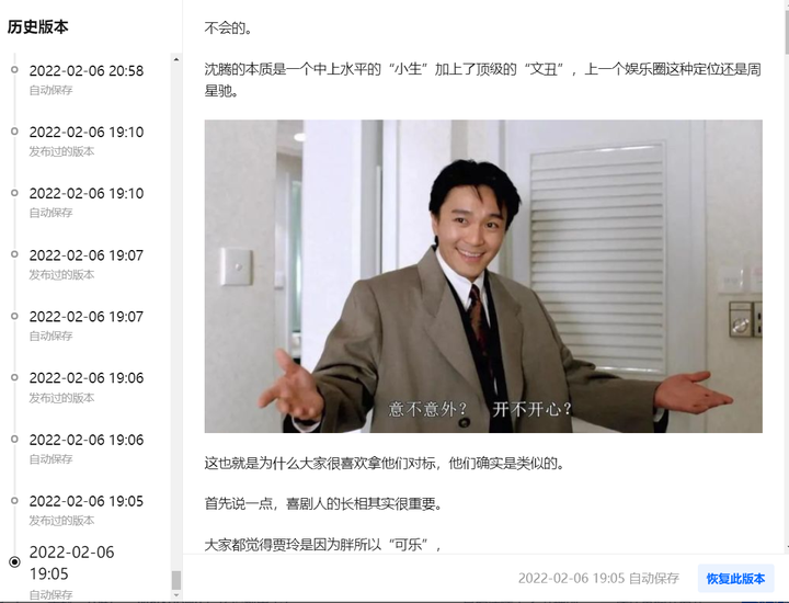 诶……算了……不提了。 原答案: 不会的。 沈腾的本质是一个中上水平的“小生”加上了顶级的“文丑”,上一个娱乐圈这种定位还是周星驰。 |