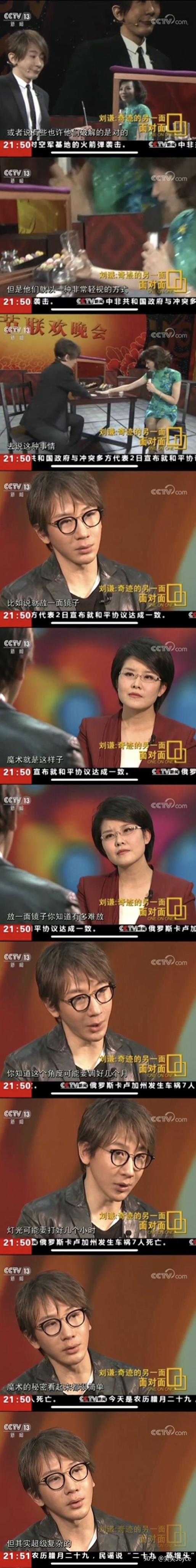 老刘:我说了,我是魔术师呀!!!! ——————央视春晚更新———————— 杰伦挺帅,特效挺炫, 魔术?不存在的。 无刘谦,不魔术。 这,其实是中国魔术的悲哀。 可是, 谁又知道,刘谦的珍贵? 他对于中国魔术而言, 就如同, 姚明对于中国篮球, 刘翔对于中国田径, 朗朗对于中国古典音乐。 但是,大家只盲目地传谣。 他真的没有跪天皇。。。。 这句话,我们说了八年了。。。 他说, 我真的很烦恼,我都打赢了官司, 但是,为什么大家都看不见啊。。。 那是一个日本的节目,情景剧。 刘谦受邀去表演魔术, 入乡随俗跪坐在榻榻米上。 从来就没有跪拜这回事, 完完全全是恶意的断章取义和误传。 他对面那个人,也不是什么日本天皇,而是著名日本喜剧大师,志村健。 如果, 这都算跪拜“天皇”,那天皇也跪了刘谦啊! |