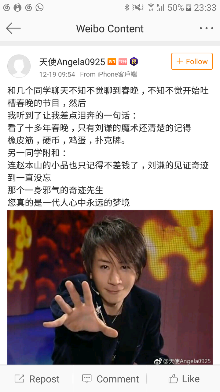 刘谦小众到炸, 但是吧, 他身上的国际范, 不是装出来提升逼格,博眼球用的, 而是在自己的领域里,低调地散发着的。23333 |