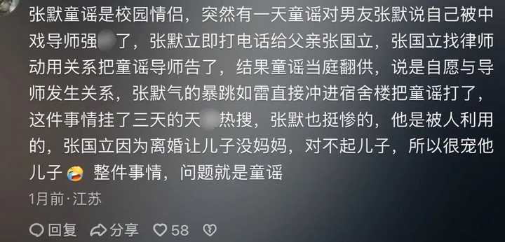 张默从出生开始,都是不缺钱的。 所以他那个长相能谈到童谣很正常,上过大学的应该都好理解。 如果说这是普通学校,只要张默愿意,二人结婚是稳稳的。 但是二人上的是中央戏剧学院,以后要当演员,吃高薪饭,当大明星的。 也就是说资源很重要。 张默和童谣恋爱期间,可能从来没有说过他爸是张国立。 然后童谣为了资源,和学校某个主任搞上了,张默被绿了,然后张默得知以后,跑到楼下暴打童谣。 事后,学校系主任确实被开除了。 当然了,身为一个男人来说,我始终觉得张默动手可以理解,也可以原谅,如果无动于衷的话真不是个男人。 另外,童谣前几年已经有了新靠山,日子过得也挺好,张默则是吸毒,彻底走入了深渊。 童谣很高调,张默现在在泰国,奔驰开着,雪茄抽着。 无论如何,还是希望两人都好吧。 送礼物 还没有人送礼物,鼓励一下作者吧 |