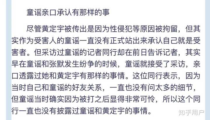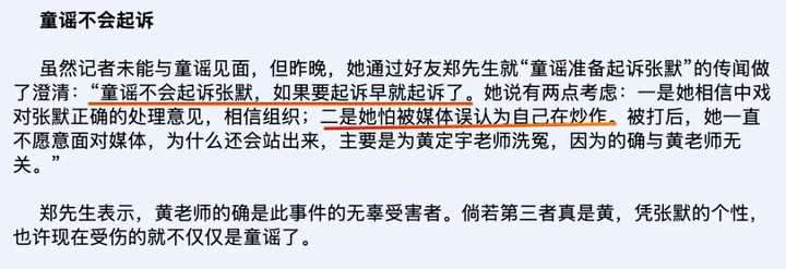 有人猜测黄定宇被带走调查跟童瑶有关,以及童瑶跟黄定宇有一腿的消息,实际上这些都没有确切可靠的证据证明,全都是外界的猜测、以及张国立父子的暗示。 所以,你会发现,当时的所有报道中,用词都相当谨慎与克制,大多以“据张默称”、“童瑶方面表示”、“据目击者爆料”、“据说”等引述方式进行呈现。 就是因为没有任何事实证据来证明这些说法的真实性,并且关于这些说法,童瑶方也在采访中予以正面的澄清与辟谣,而张默方与网络爆料者也都没有确凿证据摆放出来,所以权威媒体一直保持客观中立态度。 |