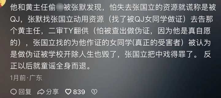 看到另一个回答 这也可以被洗白??? 张默是什么人大家都清楚,可是童瑶她,emmmmm绿茶妥了 1.张默在中戏的时候可没说自己的爹是张国立。见图二 2.两个人是男女朋友关系,打她是因为开始她说被系主任qj,张默信了,帮她找他爹找人作证,结果这女人承认黄的言辞“顺奸”?所以这是人家俩你情我愿的事,张默自己脑热喽?emmmm我也想打她(那个回答居然说童瑶和系主任关系正常,正常会给不准出去拍戏的大一大二学生《林海雪原》角色?就因为你专业课第一???大家愿意信就好,反正这个黄教授是老色批实锤了)见图一二三 3.童瑶没有被封杀,可以看她履历表,之前只是一直糊而已,后来和现在老公谈恋爱资源好多了 4.而且童瑶在她那一届人缘差得……没有人愿意和她对戏emmmm,有杨烁采访为证,不过说得委婉一点(这个找不到,不记得在哪里了,但我保证是真的) 5.张默xd在打人之后,这两件事都不对,但是,请分开看 |