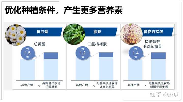 不同结构的人参皂苷(Rg1,Re,Rb1)和芝麻素等超过40种植物营养素,加进了安利纽崔莱汉本萃活妍饮品里。 这些有用的植物活性物,就是纽崔莱产品有用的关键。 - 纽崔莱和其他牌子不一样的是:它在营养素的品质上有非常大的优势。 根据纽崔莱官网的一些介绍,纽崔莱不只是生产产品,而是从植物育种,到优化种植条件,从植物中提纯植物营养素,经过安全性和有效性研究,再转化到产品上。 比如植物品种,安利纽崔莱和一些专业机构一起合作,有非常大的品种资源库。我曾经看过他们做的荷花溯源直播,看到在他们的植物研发中心里收集了300多个个品种的荷花,最后培育出了纽崔莱独有的专利荷花品种。这在整个保健品领域里都是首屈一指的。 而在种植条件上,他们用自己近百年的植物营养素经验,优化出了非常好的植物种植条件。这也是纽崔莱官方介绍上非常强调的信息:植物种植环境会影响原料的品质。所以他们的原料都选择的是道地产区。我之前关注到他们和中国国家地理合作的视频,看到他们的铁皮石斛是完全仿野生种植的,而且还有专门培育的益生菌种来提升原料品质。能把优势都放在原料的前端,我觉得是纽崔莱和其他品牌很不一样的独到之处。 |