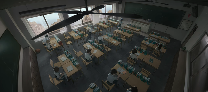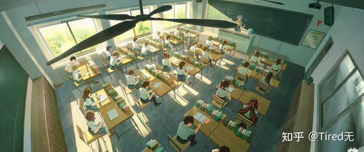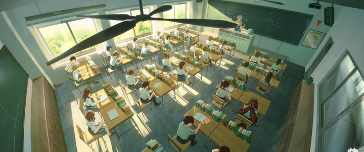 这图细节意外的充实,但就是因为细节充实,才让人感慨 嗯,至少我前半段义务教育,黑板都不是这个颜色的,也没有这么好的桌子用。 同学们的书也没有垒的这么整齐。 |