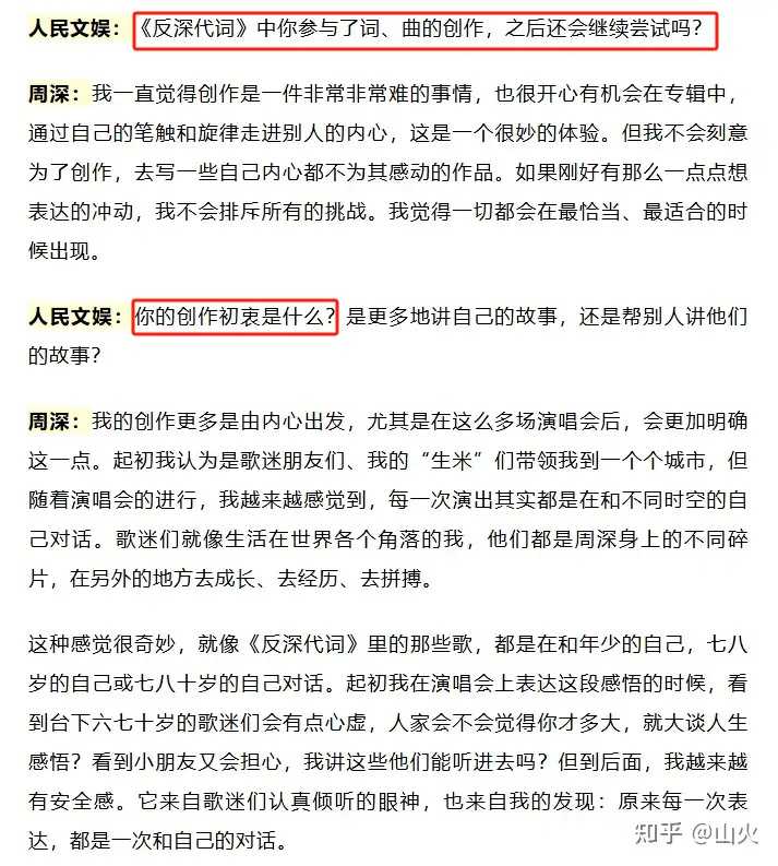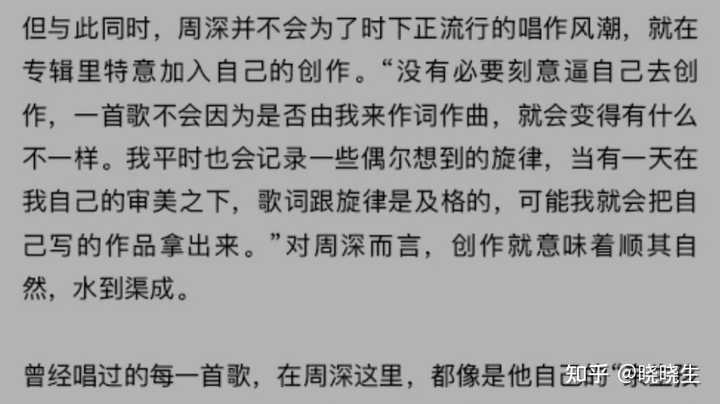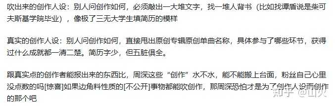 正因为不立创作人设(不管是吹出来的,还是真实的人设),所以不会动不动给别人报菜单。 当然,真正想了解的朋友们也可以关注一下周深的创作,以及他的《反深代词》。 |