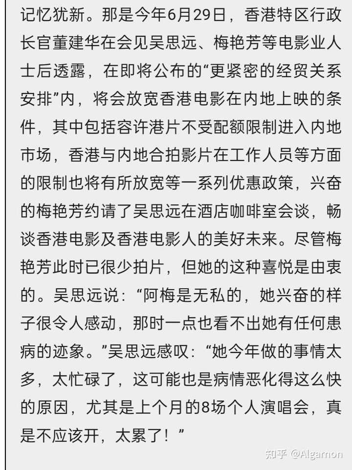 其实她根本无需再用新电影来证明自己,永远会有人记得她作为演员的成功和优秀。 但一想到她心心念念的愿望没能实现,大家心中还是充满了遗憾。 为了还梅艳芳一部电影,江志强经过漫长的筹备,拍出了《梅艳芳》。 看了电影首映的梁家辉从头哭到尾,梅艳芳的好友刘培基也给出了肯定的评价。 但对于让别的演员来饰演梅艳芳这件事,很多人还是无法接受。 梅艳芳就是梅艳芳,没有任何人能替代她。 |