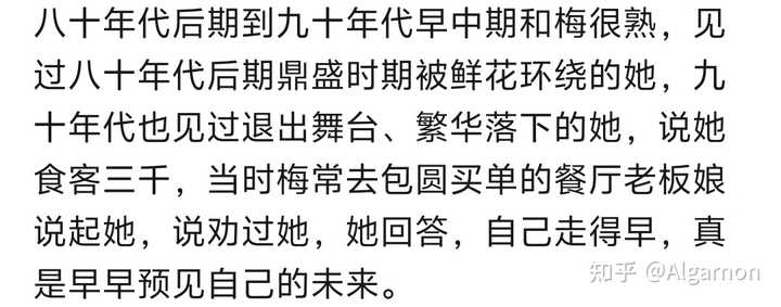 是妖女,不是女人花 对于感情她可能盲目,有时看人她也不准。但是又绝不是那种媒体说的只为男女之爱的恨嫁女。前男友Paul向她求婚后,她居然害怕束缚的逃婚了。她是一个游离于开放和传统之间的人。她见过了当时外国的开放,引领了女性新潮,同时她又抛不开当时香港乃至整个亚洲都固有的小女人枷锁。她其实有些矛盾,说她保守却也不保守,对于情感分合,绝然而坦率,甚至对于性向方面也理念超前,在采访中表示同性恋亦是普通人,呼吁自由与平等。但是她又始终有个执念,有个心结,有被原生家庭和时代偏见所影响的家庭观。她对感情的痛苦也在于这种矛盾,想想如果她活在了现在的时代,会不会轻松许多,做回自己呢? 当然鉴于她感情屡屡不顺,她似乎也对恋爱有点放弃,她其实从1995年开始就没有拍拖过。自从她复出舞台之后,其实就代表了她放弃了山口百惠的人生,更多的是想为歌迷而唱,利用知名度号召大家多做一些有意义的事,提携后辈,多做慈善。到00年,可能是姐姐的离世给了她很大打击,她的心态也转变了,变成一种佛系的顺其自然的心境。后来的采访里,她不止一次透露出了对男人的失望,不再相信男人。甚至对于谈恋爱的想法也是很烦。。。她的愿望也变成了一个人住,养多些猫猫狗狗。 对于历次情感,她其实都很坦率,没有什么忘不了,只有珍惜与感慨。 李碧华的一篇关于她的隐晦文章大概能作为总结 听不清楚,再说一遍 女人与男人分手两年多了。当初走在一起,年龄、地位、财富、阅历……差距很大,连他们自己也看不到将来。毕竟这是一段激情,开心就好。分手后,男人坚决不肯合照,女人依然落落大方,从容不迫。她太有面对群众的经验了,刀枪不入。 她说:“没什么特别。” “过去了就是过去了。” “大家个性强,合久必分。” 面不改容。 .........很吵,在狗吠声中,她“附耳细听”,听不清楚,提高声线追问,要记者再说一遍。留心、微笑、若无其事。不作结论。有时,人们觉得记者太八卦了,老是追问人家恋情和心事,却原来,偶然地,做了个功不可没的中间传话人。 那是什么重要的讯息?不过是她对逝情一些课题大方得体的分析。 “听不清楚,再说一遍。”——碧华 而梅艳芳唯一能说忘不掉的,只有近藤真彦而已。对于近藤真彦这个人渣,能让中日两大天后都喜欢他,可能是会花言巧语吧。对于家庭缺爱的人来说,以为这就是真正的关心,真正的爱。(中森明菜也是如此吧,再加上日本的婚恋观更传统,要不中森明菜这样好的大美女,她怎么能为这样一个人渣自杀)梅艳芳对他的感情可能属于得不到有心结,可能因为这段恋情正好处于她青春年少,回忆他,又何尝不是回忆年少无忧无虑纯粹的感情?毕竟那时梅艳芳还没大火,人与人的关系可能还是纯粹的,就是喜欢你。还有近藤真彦跟梅艳芳能煲电话粥一下午,还搞什么见家长。很容易让人觉得是真诚的感情。可能这也是梅艳芳没想明白的原因,她觉得这个人对自己这么好,怎么骗了自己呢?经历了那么多,还是最怀念当初年少无忧无虑的爱情。不过,梅艳芳确实是个硬气的人,当时梅艳芳发现自己被骗后,就与他断联了,十几年都没联系,该处男友处男友,只有一次中途有次跟他碰上了,叙了旧。在之后就是她生病最后去看他了。 |
