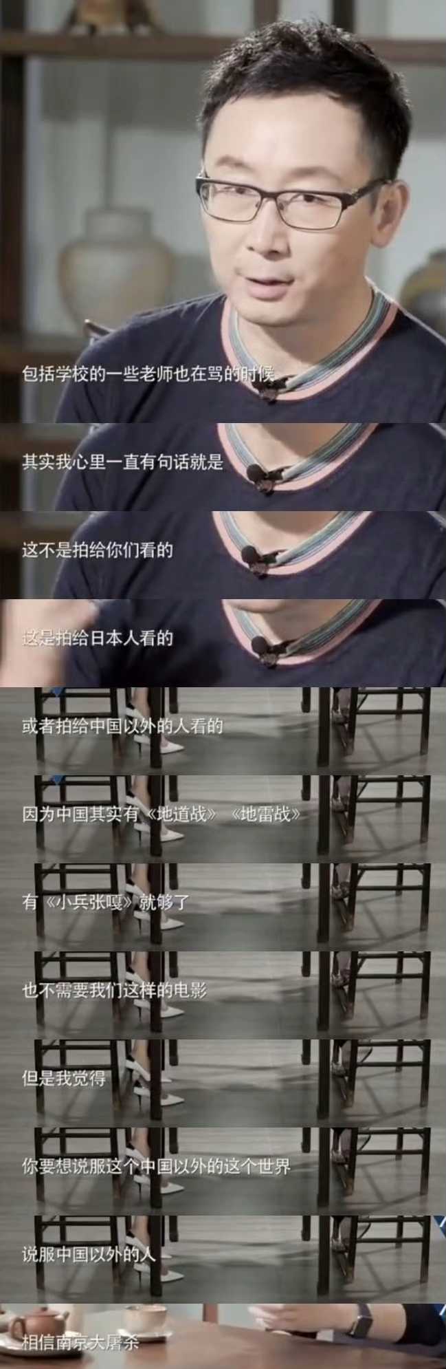 别拉别人共沉沦,大家主要是针对陆川。 因为陆川一开始的出发点就是歪的,这就注定他拍的东西不会被中国观众所接受。 我这真不是冤枉他,是他在接受访谈的时候自己说的,他说他拍的《南京南京》是给日本人看的: |