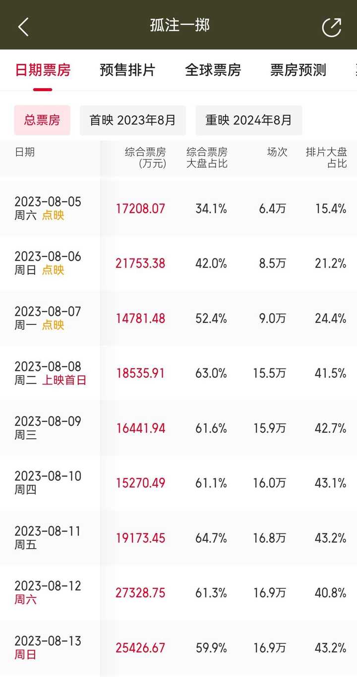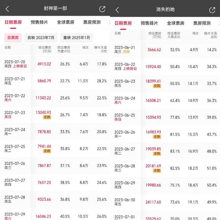 这跟工作日没形成明显差距,后劲儿确实不足。 复刻《消失的她》都难了,得跟《封神第一部》坐一桌去了。 |