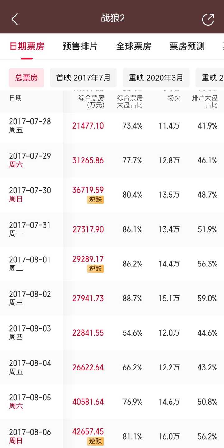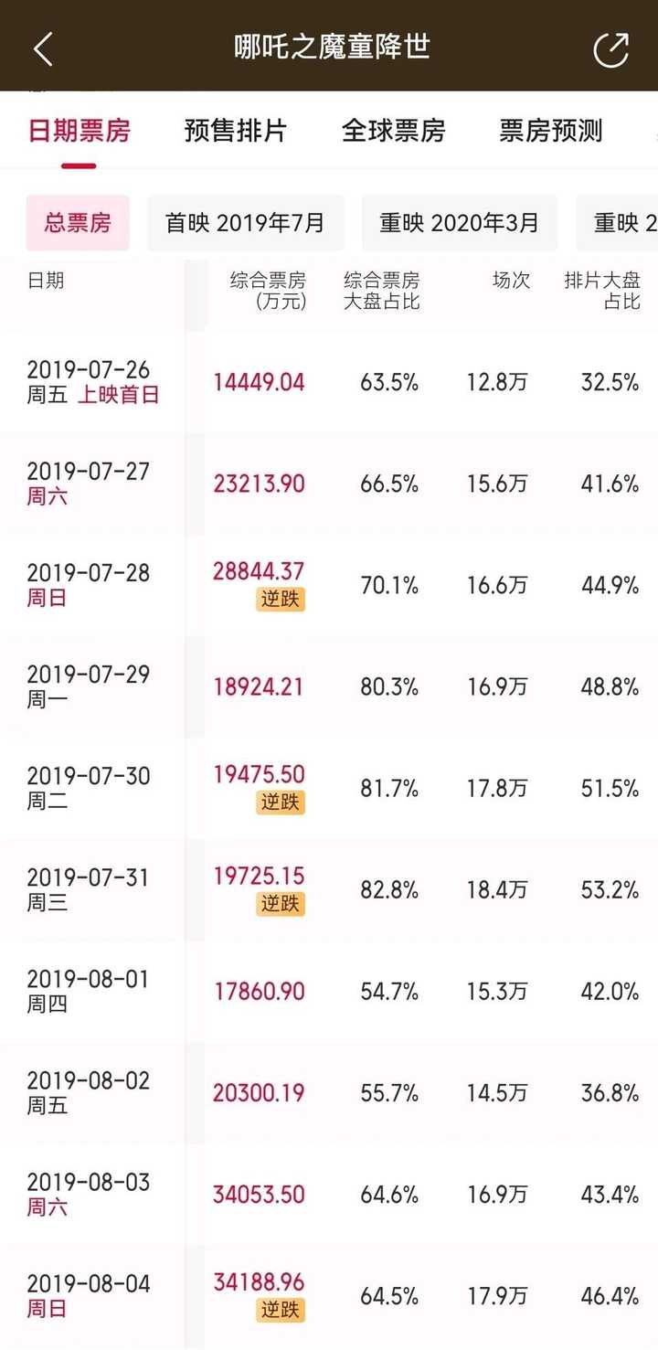 你不说像《战狼2》差不多逼近60亿级(当年票价低,《战狼2》的人次就是可以当成60亿级算的)在次周末单日干到4亿,最起码得对标《哪吒1》干到单日3亿。 很可惜,将将过2亿。 |