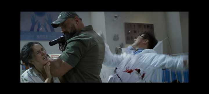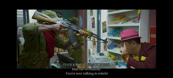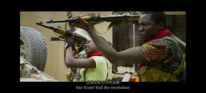 超市里被叛军杀害的另一个无辜中国路人(这个肤色你可以说他是亚裔,但考虑到剧情范围,那个地区中国劳工占比很大,于谦那个店里很多中国商品,所以认为是中国人也合理吧) 吴京带着于谦等几个国人还有几个非洲人一起逃命,都逃到中国大使馆门口了,叛军一样在嚣张的开火 |