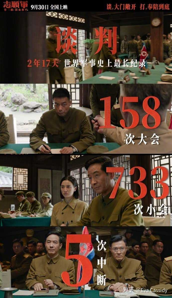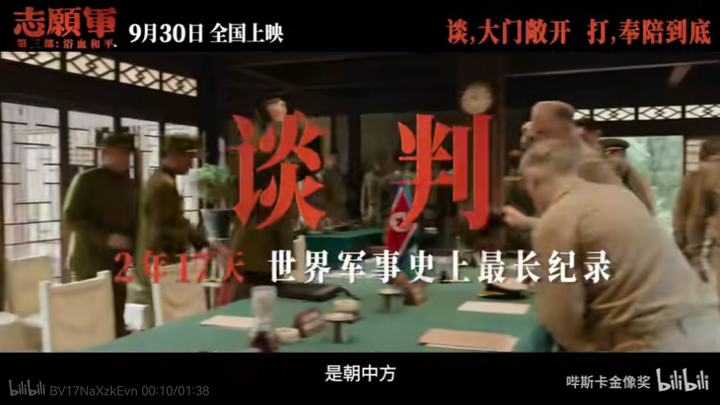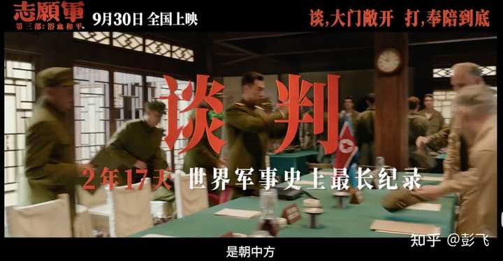 预告片中的镜头4、板门店谈判 《志愿军 3:浴血和平》主要讲的是上甘岭战役和板门店谈判,了解抗美援朝历史的朋友们应该都知道,板门店谈判在历史上的重要性。 由此可见,陈凯歌导演用「志愿军三部曲」,完整讲述了整个抗美援朝的历史,也弥补了他在电影《长津湖》中未完成的夙愿。 |