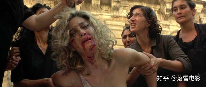 第三种含义就是反差,这种反差充斥着整部电影,比如此时的男主幻想、自慰时有多猥琐,那么此后的行为就会显得多么光辉。他将阴暗与猥琐展现,而那些前期彬彬有礼、道貌岸然的镇民们,后来却无耻而卑劣的垂涎玛莲娜的肉体、唾弃着她的灵魂。 玛莲娜的肉体有多美好,那现实就有多丑陋;几乎所有人都能看到她的肉体,却看不到她忠贞的灵魂。仅仅只是一副肉体,却让人看到了两种强烈的冲突。 不过,以落雪的视角来看,男主的“性幻想”裸露,其实可以相对减少一些,并不影响剧情。本片最核心的,反而是玛莲娜在世俗压迫下的裸露,这个裸露才必不可少。 2、对残忍现实的控诉 整部电影对欲望的表达,有着两个极端,镇民们对玛莲娜的渴望,是随着玛莲娜丈夫上战场、去世、玛莲娜与父亲诀别、父亲死亡而不断加深的,充满了渴望的鬣狗们对弱小的玛莲娜,不断表达着欲望。 |