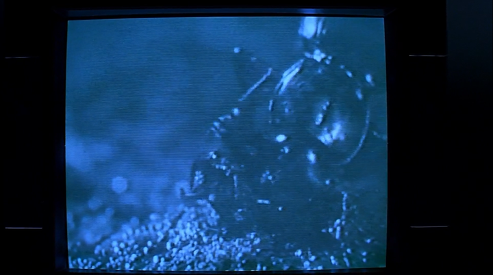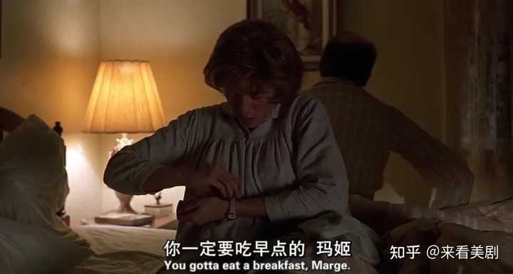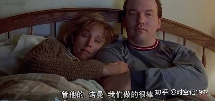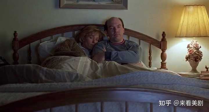 同僚们熟悉玛姬的丈夫(对比杰瑞的同事),对玛姬也更有关心(对比杰瑞的工作状态)。 他们愿意尊重玛姬,并顺其所好地尊重她的丈夫。 比较吊诡的是,恰恰是工作环境的残酷性,令警察们增进了对同僚的情感,而不像那些在法理框架内优胜劣汰的销售们互相疏离。 一个夫妻二人晚间休息的场景,将我们代入诺曼夫妇的家庭。 玛姬看着电视上播放的动物猎食的场面(其残酷性的一面,也正如玛姬的工作日常): |