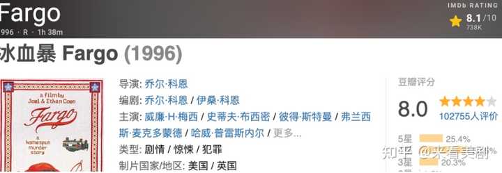 然而剧版的结构完全是照着电影里来的,黑色幽默,荒诞无常,堪称经典!本片上映于1996年,属于科恩兄弟早期代表作之一。 |
