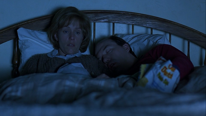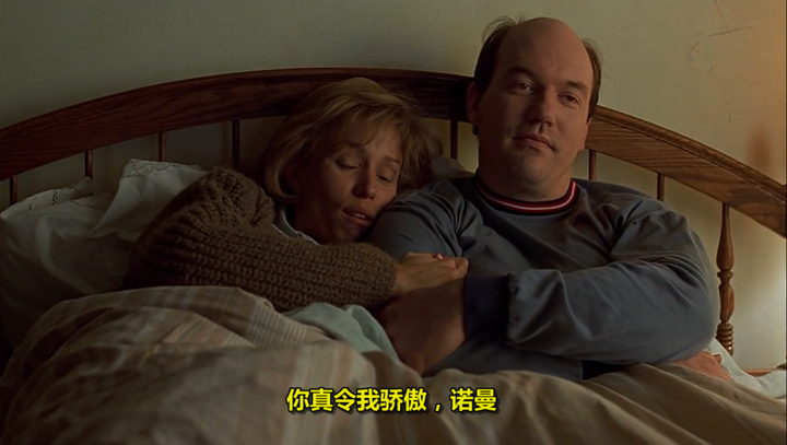 玛姬是个警察,也是这个城市里法律、正义的化身。她的生活日常便是追查案情,和犯罪分子打交道。 她的职业身份要求她天天在外面奔波,而不是像杰瑞的妻子一样做个家庭主妇。她的家庭身份也更为强势,不是毫不履行责任地对丈夫无限信任(这种信任其实是一种懒惰和愚蠢),而是承担起来家庭的主心骨。 而她的丈夫,作为一个失意失业的宅男画家,反倒处于一种被保护的地位。 玛姬更像个丈夫,而诺曼则像是个妻子。 |