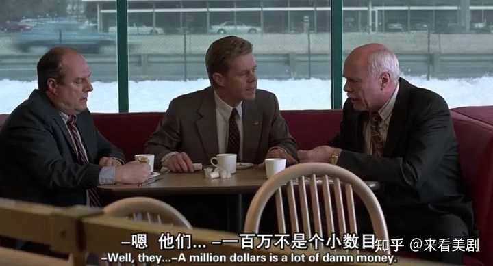 而在《冰风暴》里,导演通过犯罪分子满脸懵逼的追问,突出了这种荒诞性。 绑匪:我只能说,这听起来很荒谬, 杰瑞:不,不会有问题!一定行得通的。 绑匪:你要绑架自己的老婆? 杰瑞:对 绑匪:你……我意思是,那八万元赎金由你来付。你给我们一半,自己留一半,左手交给右手,合情理吗? 杰瑞:是这样,赔款不是由我来付,我太太很有钱,她父亲是个富翁…… |