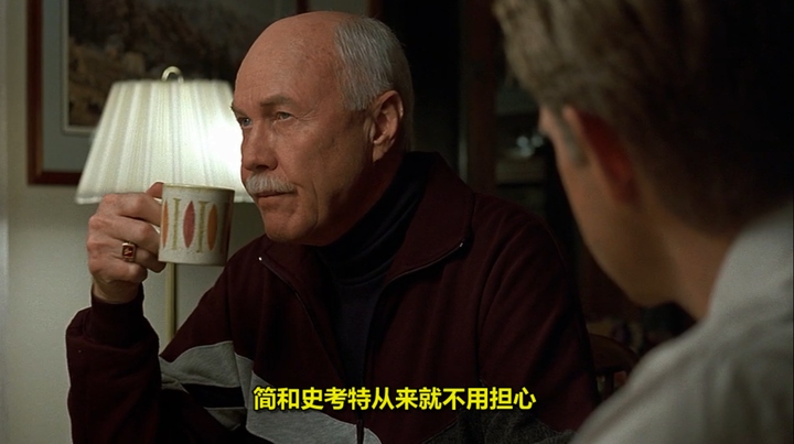 这段对话或许会令人想起郭德纲讲的段子,于谦的父亲在公海遭遇海盗,被勒索巨额赎金后不怒反喜,还要求对方开个数目更大的发票,最终海盗含泪感叹:还是你们狠呐! 在这个场景里,导演暂时互换了杰瑞和绑匪的身份属性,令故事讲述的方式充满揶揄色彩: 一个体面的城市中产,做下如此下作且不近人情的事,犯罪分子都看不下去,甚至自叹弗如了。 电影最初始的戏剧冲突——杰瑞陷入财务危机,实际上是启动了开关,令观众看到一个看似幸福体面的中产家庭,遭遇外力后会崩溃到何种程度。一个身为人的城市中产,会如何揭掉人的面具,露出动物性的面目。 影片人物不停切换人/动物的身份的过程中,亦将对应地伴随着社会关系/丛林关系的构建。 这种“人和人的社会关系”与“动物间的丛林关系”之间的无缝衔接、瞬时切换,正是科恩电影里经常出现的一个母题,是他作品的落脚点,也经常是反讽、揶揄爆发出黑色幽默效果的地方。 导演的镜头紧接着就带着我们进入了杰瑞的家庭,对每个角色的刻画都非常细腻,并精炼周到地勾画了人物之间的微妙关系: 杰瑞看起来是个很称职的丈夫、父亲,面对妻子的富豪爹却总显得没什么底气。 妻子是个傻白甜的家庭主妇,出于某种智力的弱势而对丈夫无限信任,或者说,就像信任太平社会里的任何人一样信任丈夫。 儿子进入了叛逆期,对父亲的权威只保留了一种非常表面的尊重,而这还是父亲竭力应承圆转的结果(比如儿子吃饭离席的时候,父亲面对全家人给出一个有道理但也非常表面的理由,实际上儿子未必多么尊重他,而他也极有可能不会多关心儿子)。 岳父非常有钱,他也从不忽略这一点,甚至时刻通过盛气凌人来强调这一点。 |