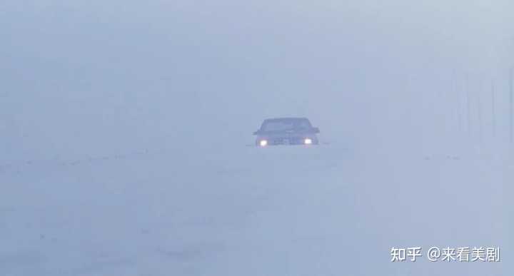 第一个镜头就是一片白色,隐隐地,出现一辆车的轮廓,发出两个微弱的光点。 等到了眼前,才恍然发觉是一辆车拖着另一辆残破不堪的车,在背景音乐徒然升起的高潮里,又使出镜头。 接着出现5个黑色字母:F A R G O。 |