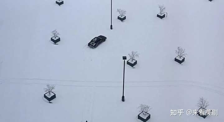 当他被老丈人羞辱且摆了一道后出来时,镜头是俯视的,白茫茫的雪地上,只有他一辆车。 然后他缓缓上车,没有拍他的正面,你看不到表情,而是从背面呼出来的水汽。 接着他下车,拿铲子铲汽车玻璃的冰,在冷的温度中,情绪积累、爆发。 |