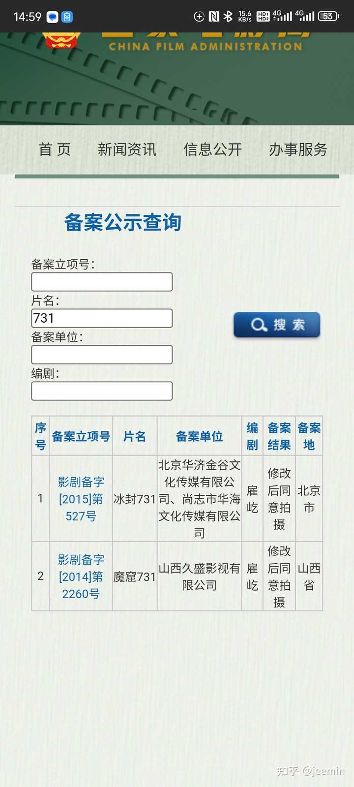 介于几个反复强调是9月1号才通过的所以查不到,现在我就贴上另一个许可证查询结果和731占边的就这2部,编剧还是同一人。 但是可不是赵林山 |