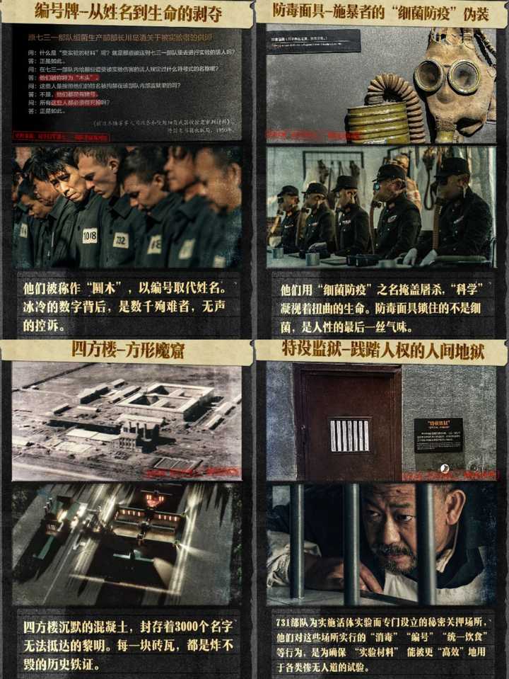 包不去看的。 9月18号那天是星期四,一张电影票差不多50块钱,我省下这钱去吃肯德基不好吗? 老子就是哈尔滨人,731罪证陈列馆就在我老家,学校组织我们去过,我自己也去过,里面的介绍相当详尽而且刻骨铭心,更重要的是它免费,这才能起到最好的教育意义。所以我为什么还要花那个钱走进电影院里去看一部内容一点都他妈不严谨一点都不尊重历史的洗钱电影呢?? 更幽默的是,731罪证陈列馆的出口,是“向光而行”的隧道,是有良心的日本国际友人立在那的“谢罪与不战和平之碑”,这都让我印象深刻,而相比之下这sb电影还在门外装模作样地放几个橡胶假人让观众“泄愤”——就好像他们的破电影真的能勾起观众的愤怒一样,属实是唐完了。 |