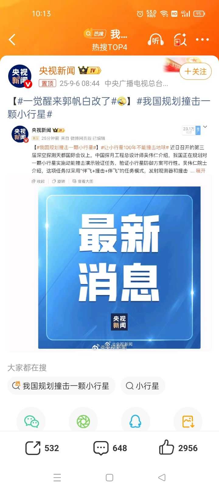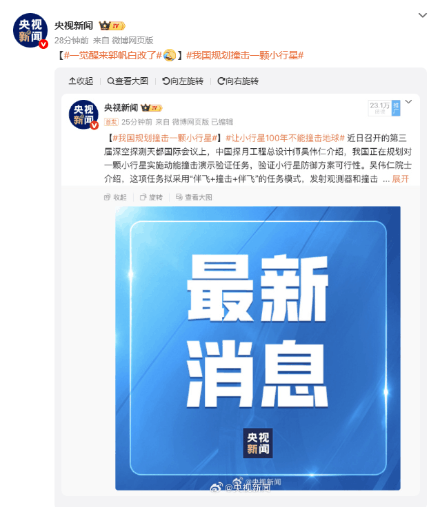 最新消息:央视新闻宣布:郭帆剧本白改了! 看来《球3》起码得增加一个“捕获陨石用于xxx”的剧情才行了。 |