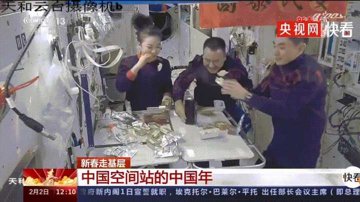 神舟十三号的3名航天员翟志刚、王亚平、叶光富 / 图片来源见水印 本纪录电影就像家人之间互相拍摄的vlog一样,镜头会有晃动,会有没对上焦的片段,这更加体现了真实——摄影师就是主演自己,展示的就是中国航天员的生活起居。 拎包入住搬入新家的时候要拆天舟飞船送上来的快递;吃饭的时候三人坐在一起有说有笑;与家人视频通话流畅的就像打电话一样(就是略有延时);过年的时候穿新衣,写春联,吃鲅鱼饺子······还有许多有意思的小情节我就不透露了,希望你走入电影院的时候能和大家一块被幽默的“主演们”逗乐,虽然咱上不了天,看人家上天也是假装体验过了哈哈哈。 |