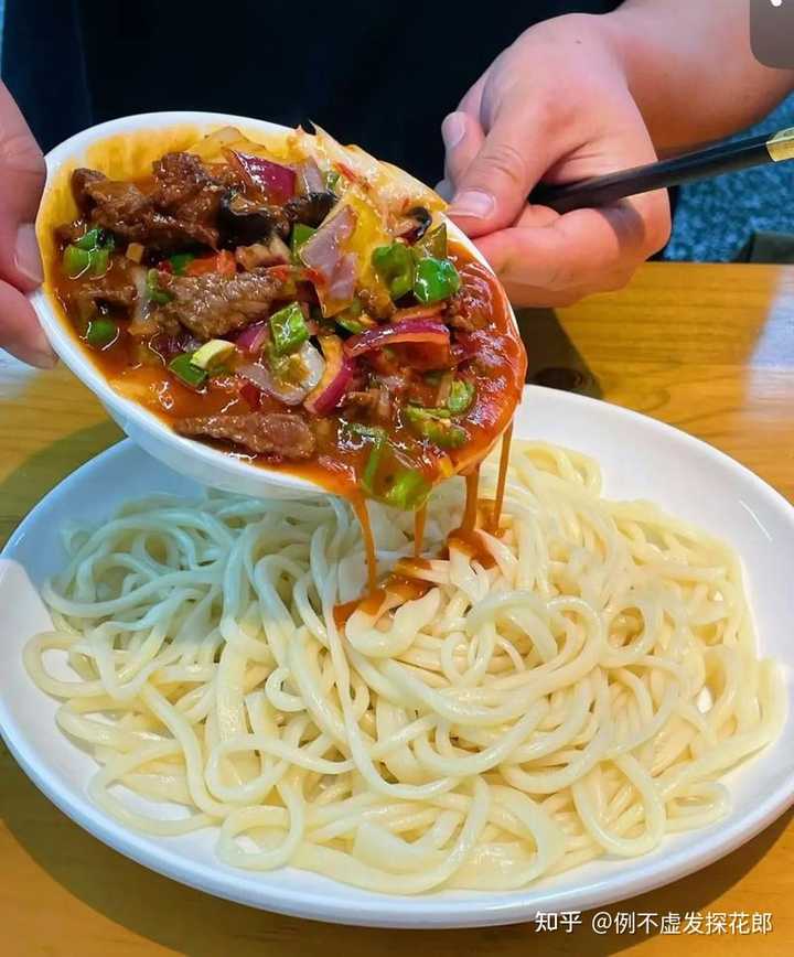 十多年前我和同事在新疆轮流开车赶了十八小时路,终于赶到地方把故障排除后转身去小镇上吃过油肉拌面和大盘鸡拌面 小镇不大,消费不低,一份拌面30 不过菜量还可以,白皮面免费续 |