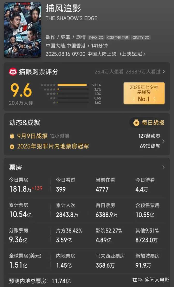 还有一个扎心的事实,动作片不流行了。 《捕风追影》已是近十年最好的国产动作片了,在暑期档,票房才堪堪过10亿。 翻开中国影史票房榜,20亿票房以上只有两部动作片,《战狼2》和《红海行动》,前100也就多了《功夫瑜伽》《怒火·重案》《湄公河行动》《叶问4》,就连诚意十足的《碟中谍8》内地也才4.64亿。 |