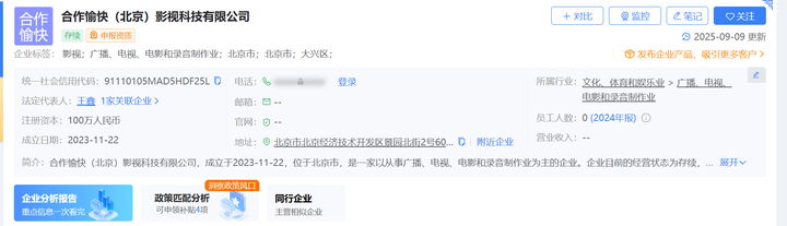 不过,这公映许可证上排在第一的出品方“合作愉快公司”是什么来头?查了一下,这家公司在23年11月才成立,那时候《731》这部电影都开拍好几年了。搜了一下其他信息,猜测这家公司是赵林山自己的工作室注册成立的公司 |